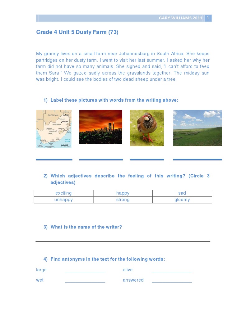 Grade 4 Unit 5 (73) Dusty Farm Adjective Farms